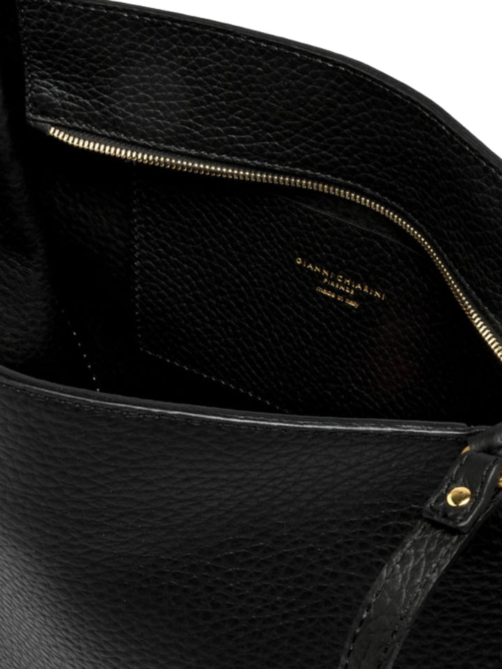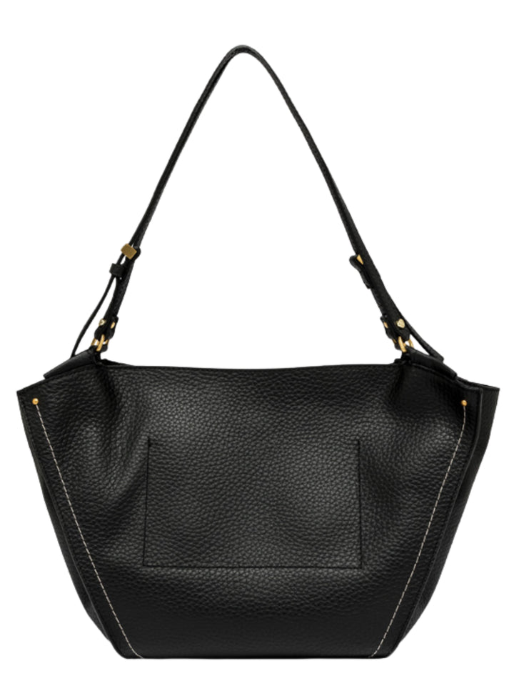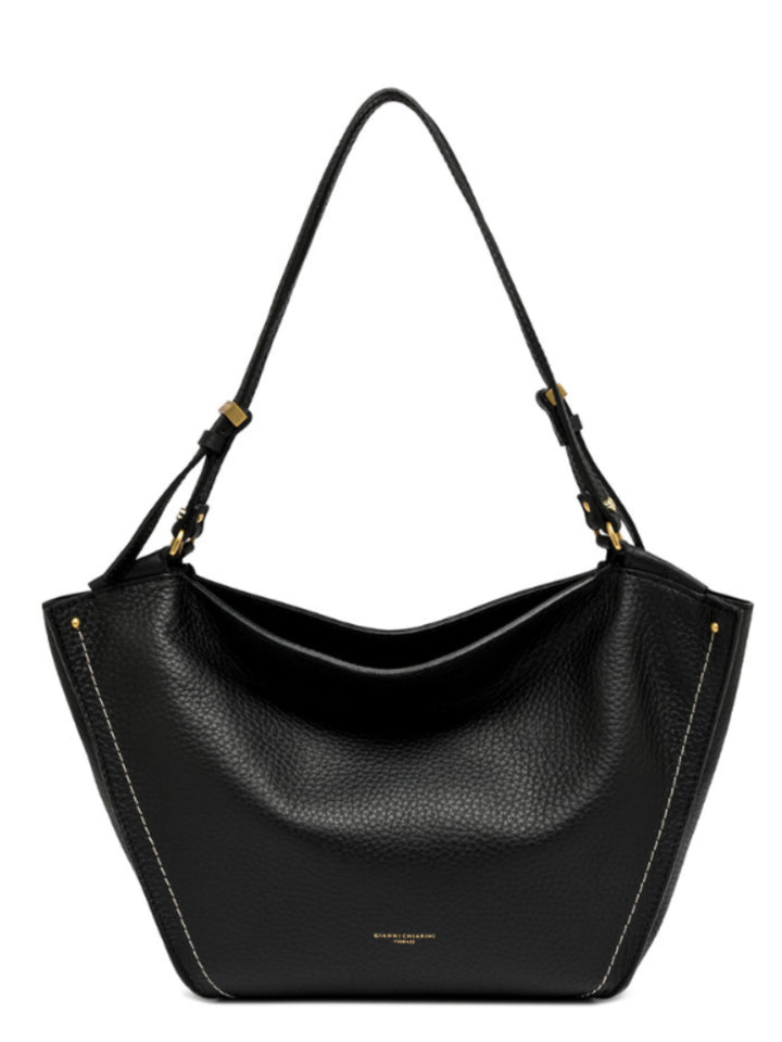 Bloom è la nuova borsa pratica e capiente, caratterizzata da una shape a tulipano. Realizzata in pelle double dalla grana maxi ed impreziosita da una cucitura decorativa a contrasto. L'accessorio è arricchito da elementi in metallo che donano alla borsa un tocco di lucentezza. Dimensioni: 50x27x18 cm.