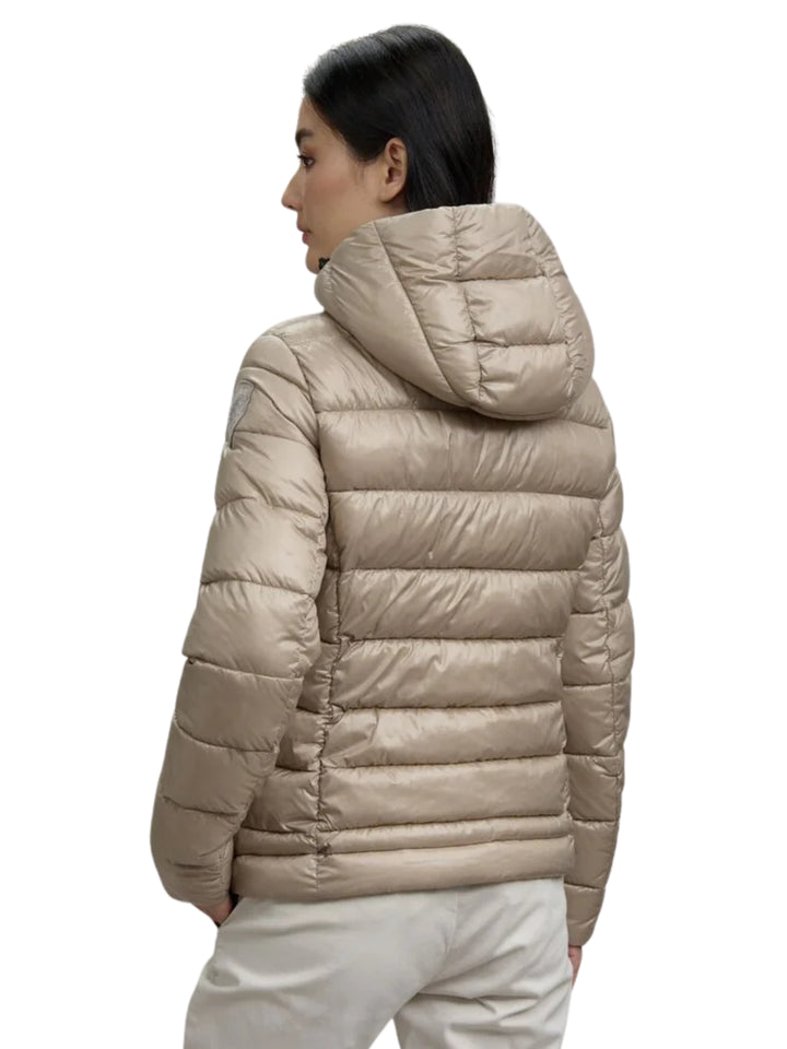 Giubbetto invernale in nylon idrorepellente micro rip. Imbottitura sostenibile, effetto sfiancato dai colori moda.