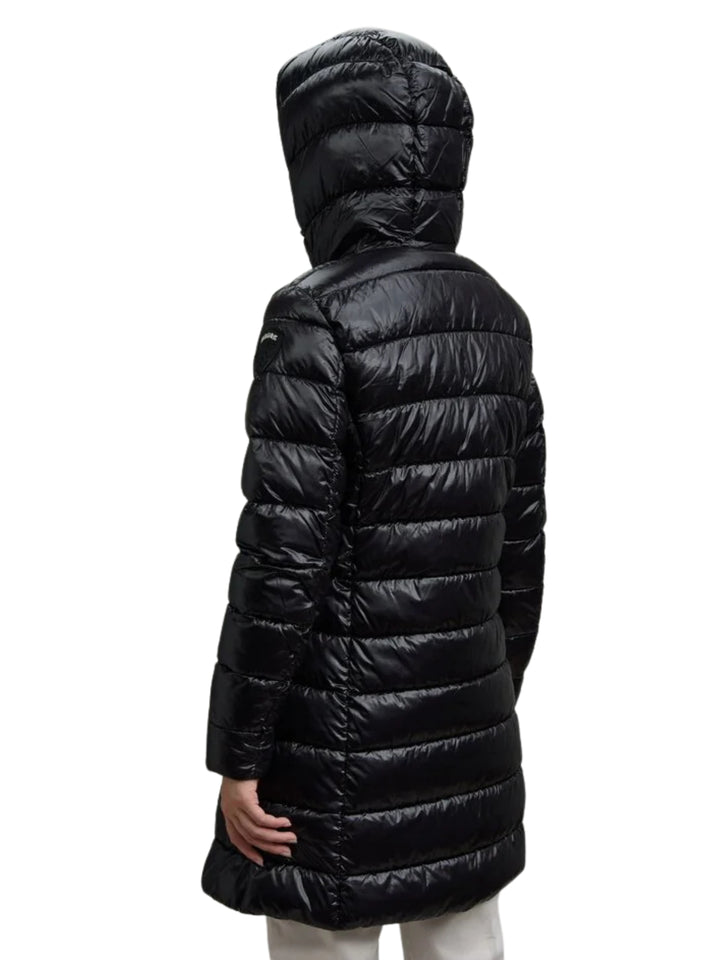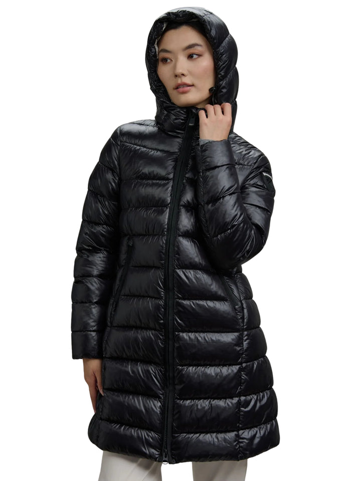 Giubbetto invernale lungo in nylon micro rip con cappuccio impunturato a linee orizzontali. Caratterizzano questo capo l’imbottitura ecologica, i colori alla moda e la vestibilità dall’effetto sfiancato.