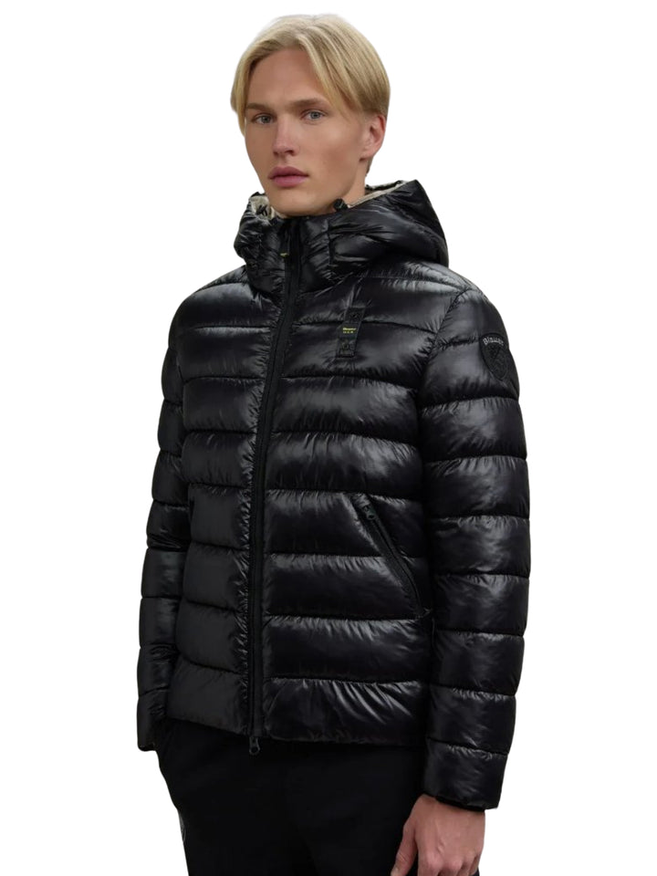Giubbetto uomo idrorepellente in nylon micro-rip con leggero motivo check. Modello dalla classica siluette, indicato sia per la città metropolitana sia per il tempo libero.