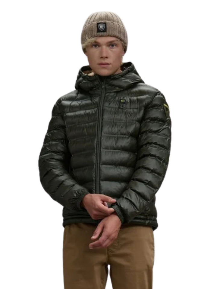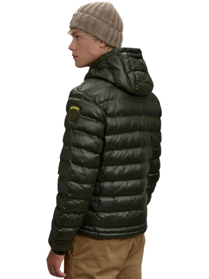 Giacca con cappuccio fisso e cuciture orizzontali trapuntate termosaldate. Imbottitura leggera ed ecologica ricavata da bottiglie di plastica riciclate.