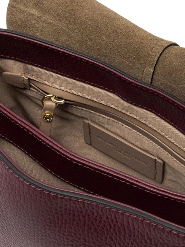 L'iconica Helena Round di Gianni Chiarini Firenze, realizzata in pelle martellata, si distingue per il suo design strutturato e dall'appeal contemporaneo. Versatile e funzionale, è dotata di una tracolla per una doppia portabilità. Pratica e organizzata è caratterizzata da un doppio compartimento interno e da una tasca a scomparsa anche nella parte posteriore della borsa. Dimensioni: 26x21x9 cm.