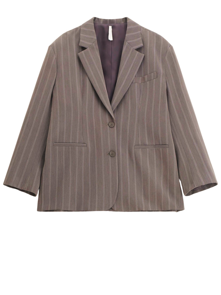 Un blazer che unisce tradizione e contemporaneità con un design a righe che si sposa perfettamente con momenti formali e informali. Versatile e adatto a diverse occasioni, è un capo che invita ad esprimere il proprio stile con sicurezza. La chiusura monopetto aggiunge un tocco di classe senza tempo.