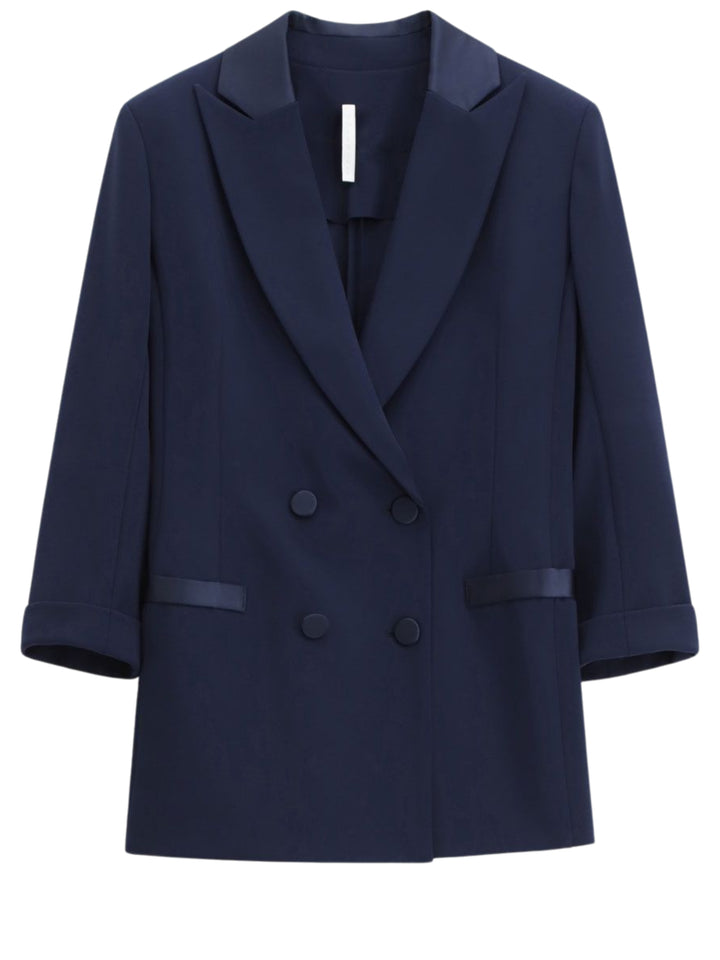Lascia un'impressione duratura con questa giacca dal taglio impeccabile e dalla linea pulita. Il design doppiopetto aggiunge struttura, mentre la sobria palette a tinta unita ne esalta la versatilità. Ideale per il contesto cittadino, questo blazer soddisfa le esigenze del guardaroba di chi sa apprezzare il giusto equilibrio tra funzionalità e stile quotidiano.