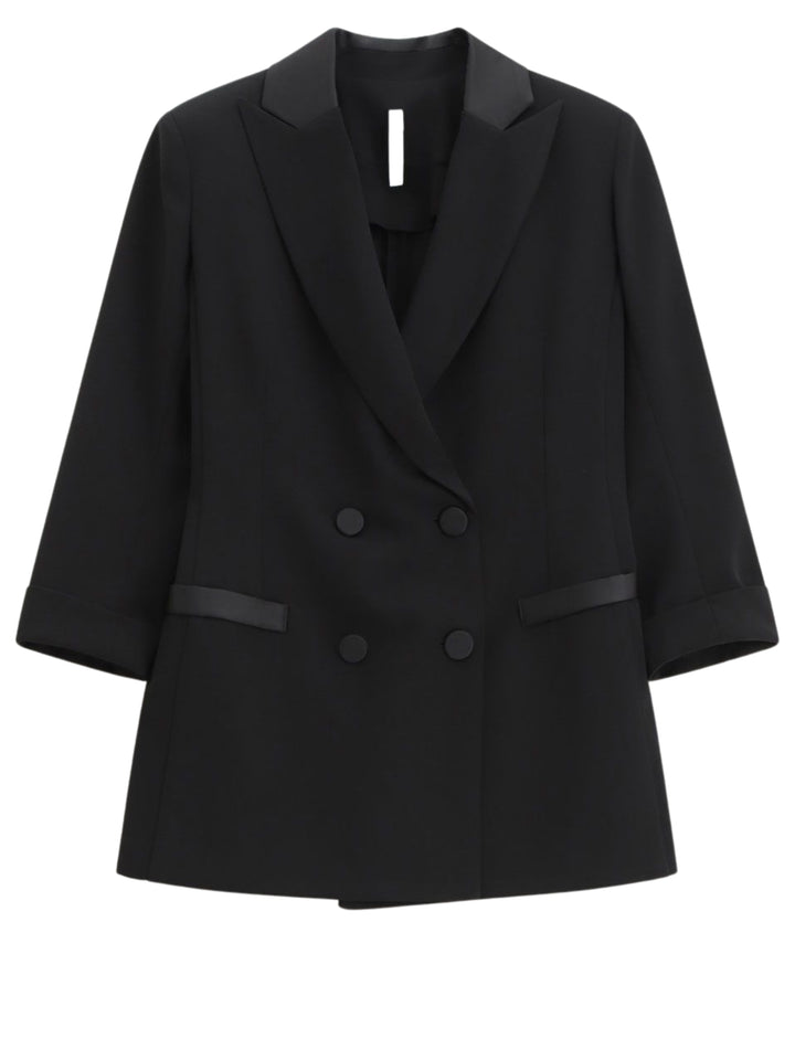 Lascia un'impressione duratura con questa giacca dal taglio impeccabile e dalla linea pulita. Il design doppiopetto aggiunge struttura, mentre la sobria palette a tinta unita ne esalta la versatilità. Ideale per il contesto cittadino, questo blazer soddisfa le esigenze del guardaroba di chi sa apprezzare il giusto equilibrio tra funzionalità e stile quotidiano.