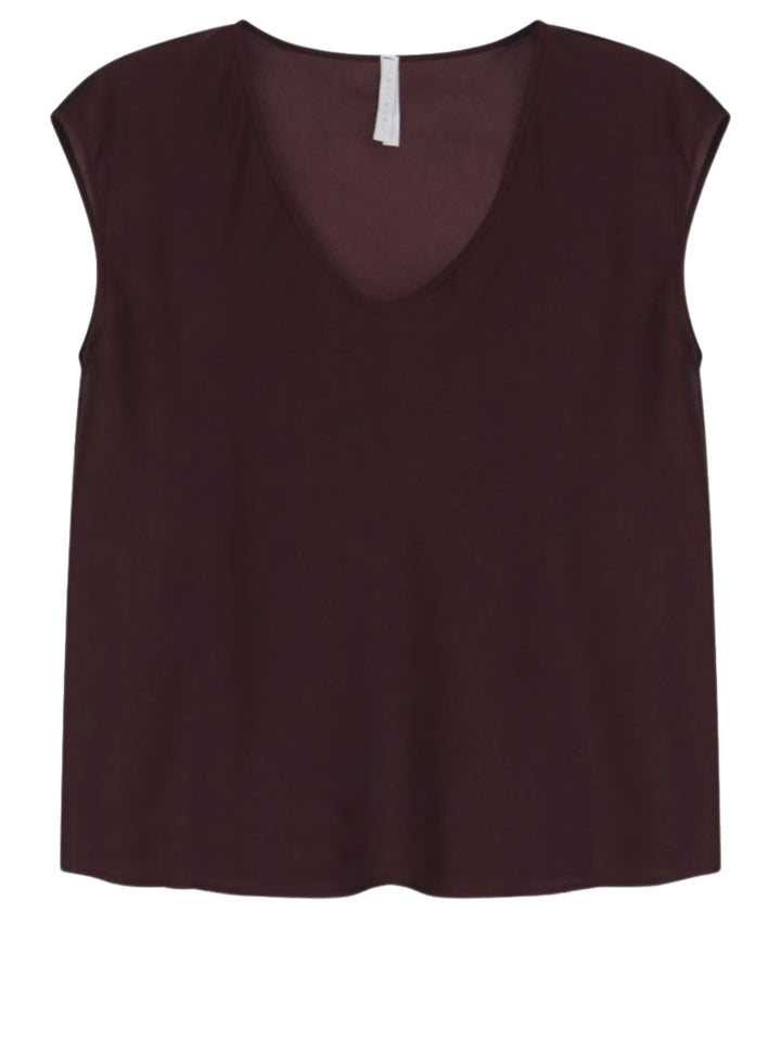 Scopri un top smanicato che incarna la raffinatezza urbana. Il design con scollo a v esalta il tuo look quotidiano, creando una silhouette delicata che si abbina perfettamente a qualsiasi outfit. Un must per chi ama distinguersi in ogni occasione, offrendo una versatilità che stimola la creatività e il gusto sofisticato dei metropolitani.