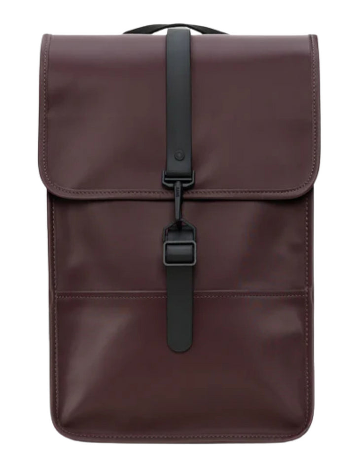 Il Puffed Backpack Mini presenta un esterno fortemente imbottito con chiusura a moschettone. Il modello è realizzato nell'iconico tessuto impermeabile in PU di Rains.