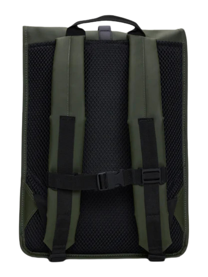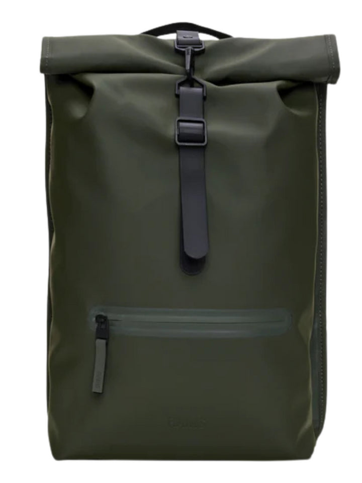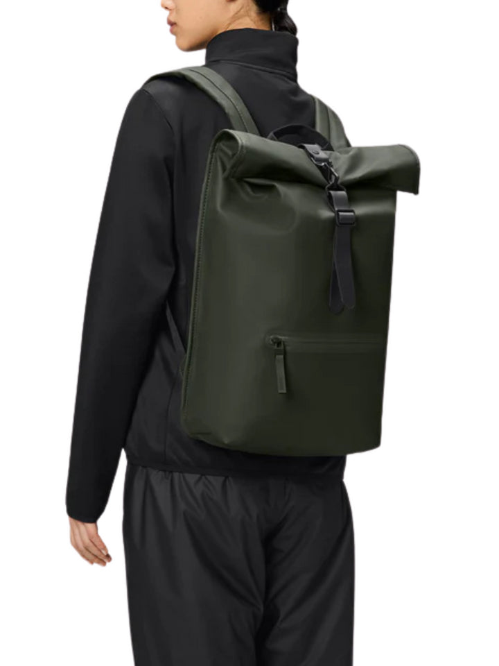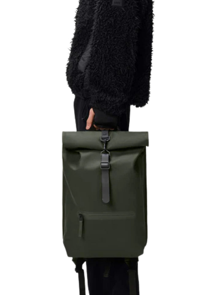 Il Rolltop Rucksack è realizzato nell'iconico tessuto PU di Rains, progettato per essere robusto, duraturo e piacevole al tatto.