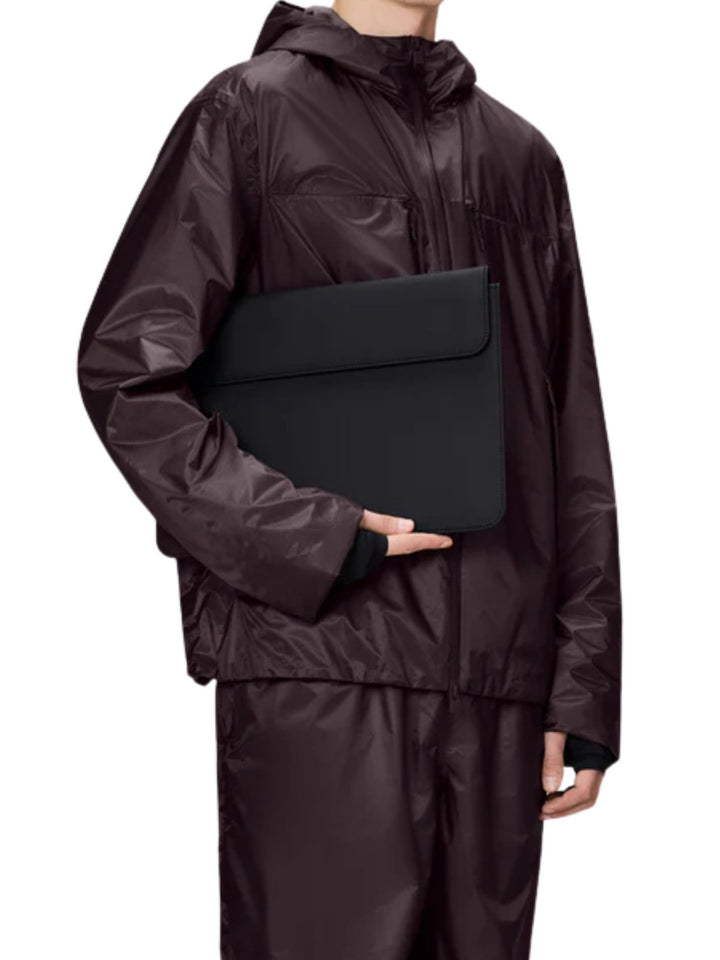 Il Laptop Portfolio è realizzato nell'iconico tessuto PU di Rains, progettato per essere robusto, duraturo e piacevole al tatto.