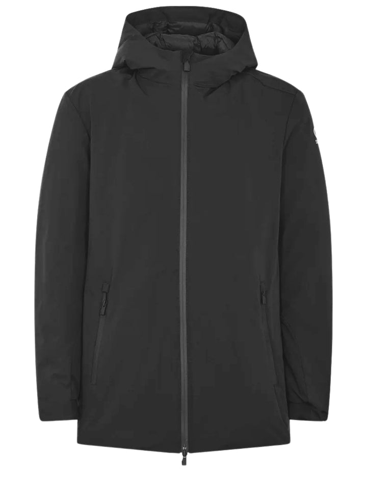 Un giubbotto tecnico da uomo dal design pulito e dalla funzionalità avanzata. Il tessuto idrorepellente e l'imbottitura in Thermolite assicurano isolamento e leggerezza. Il cappuccio fisso, la zip waterproof bicolore con lato interno arancione e i polsini in neoprene offrono protezione completa dalle intemperie. La lunghezza estesa lo distingue per praticità e stile, mentre la pinnetta arancione fluo sul fianco destro richiama l'identità dinamica del brand.