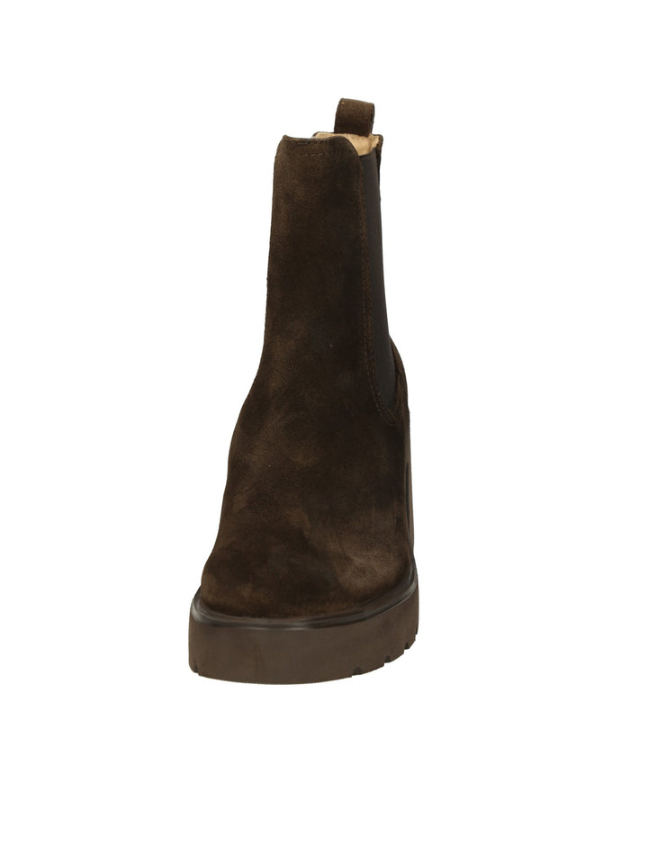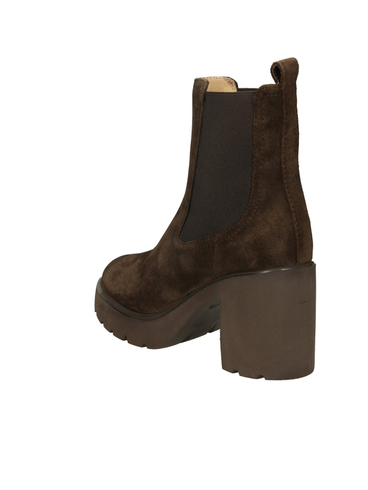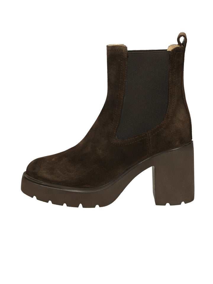 Stivaletti con punta rotonda in pelle scamosciata. Cerniera interna. Plateau alto 2,5 cm e tacco di 8,5 cm. Suola SuperLight che lo rende leggero, comodo, ergonomico e flessibile. Comfort, calore e leggerezza sono le caratteristiche del nostro modello KHAN.